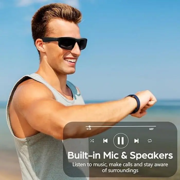 Diseñadas para acompañarte en cada momento de tu día, estas gafas te permiten escuchar música con calidad envolvente y gestionar llamadas con total comodidad, manteniendo siempre tus oídos libres para conservar la atención en tu entorno.